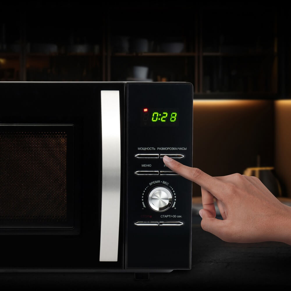 - Режимы работы: микроволны, размораживание, разогрев