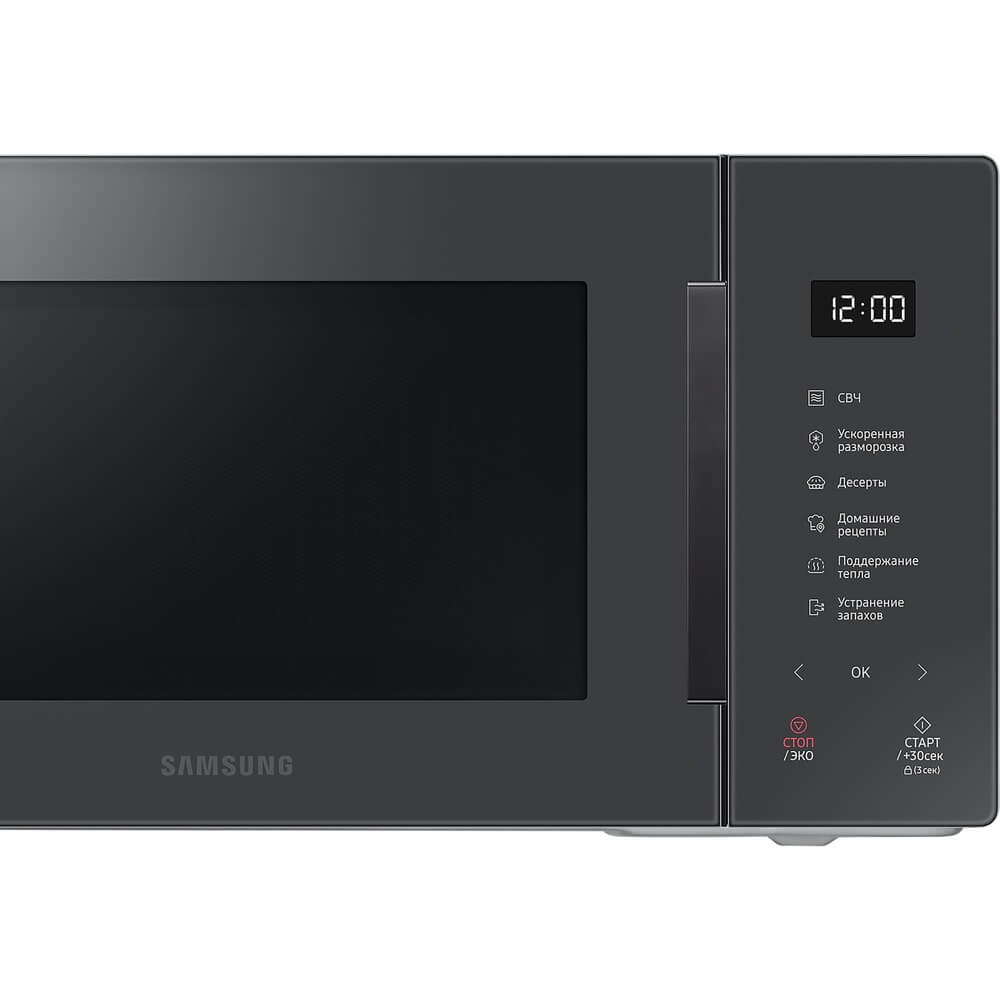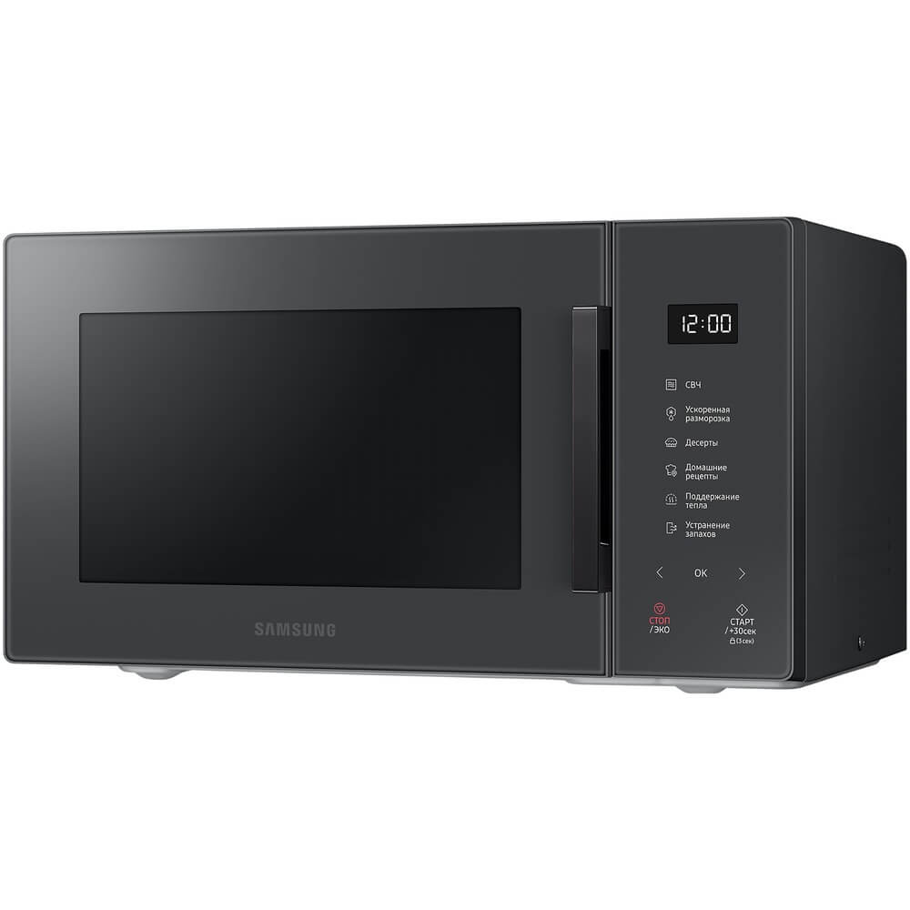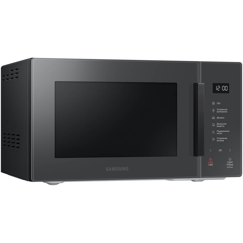 Микроволновая печь Samsung MS23T5018AC – идеальное решение для быстрого и удобного разогрева блюд, обладающее стильным серым дизайном и множеством полезных функций, которые выделяют её среди конкурентов.